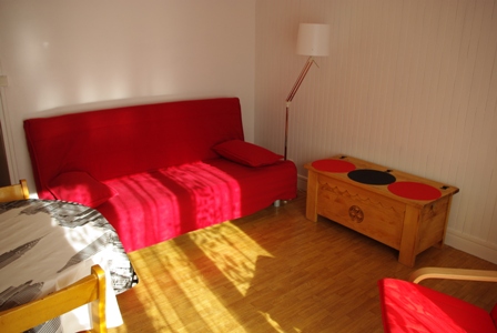 - Pièce à vivre: Coin repas, 1 canapé lit (2 pers), 1lit simple (1pers), télévision.