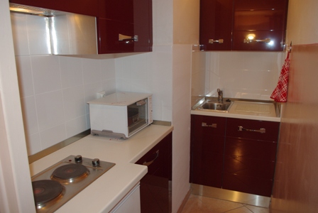 - Coin cuisine : plaques électriques, mini-four, four micro-ondes, lave-linge, lave vaisselle, réfrigérateur et tout le nécessaire de vaisselle.