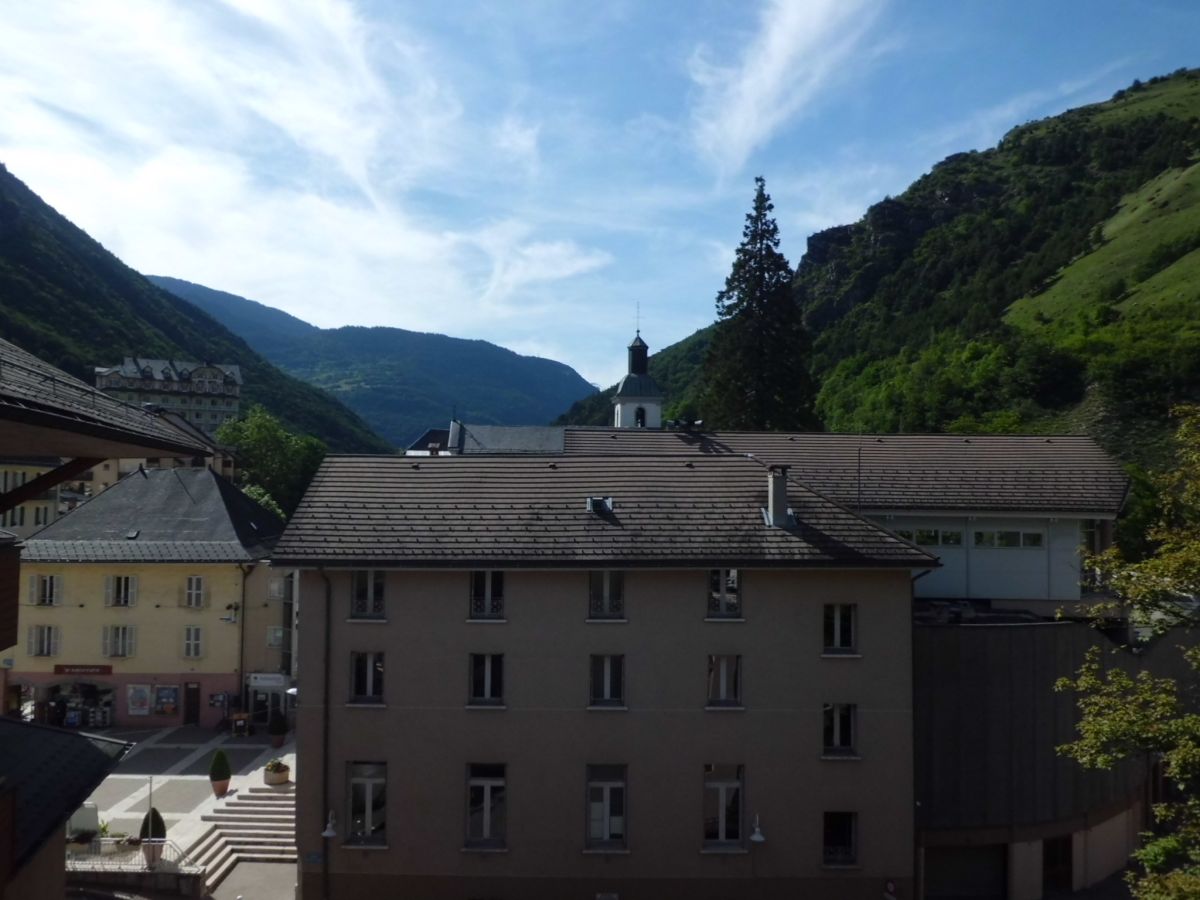 Vue sur le centre de Brides les Bains et sur la montagne.