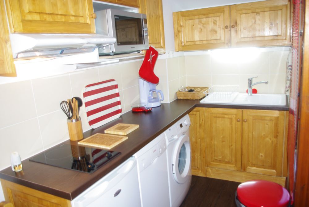 - Kitchenette très bien équipée : plaques électriques, four micro-ondes multi fonction, réfrigérateur et tout le nécessaire de vaisselle. Table et fer à repasser. Machine à laver et lave vaisselle.