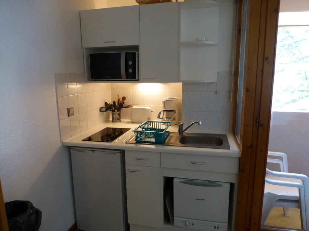 - Coin cuisine : plaques vitro céramiques, micro-ondes, réfrigérateur avec partie freezer, lave vaisselle et tout le nécessaire de vaisselle.