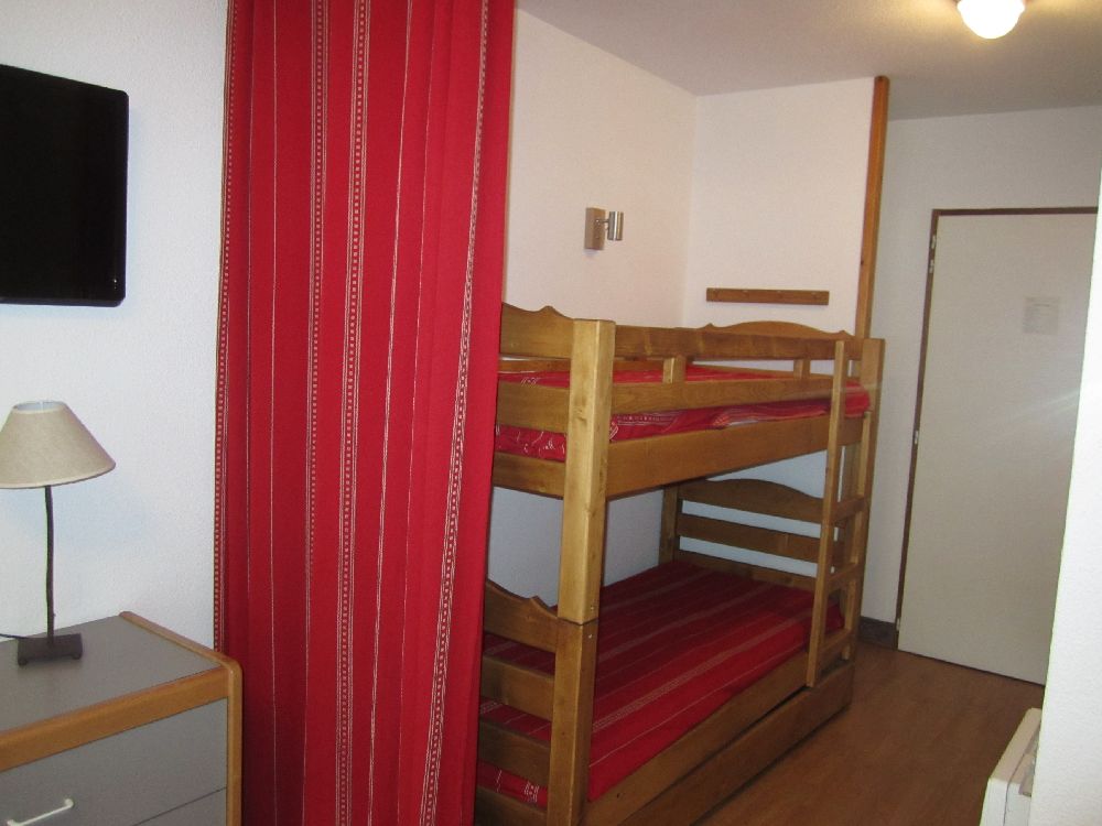 Un ensemble de lits superposés (2 personnes) à l'entrée séparé par un rideau. Canapé lit gigogne. (2 personnes) dans le séjour.