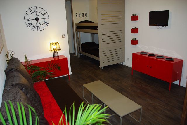 Un ensemble de litsd superposés (2 personnes) à l'entrée. Canapé lit gigogne (2 personnes) dans le séjour.
