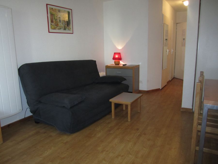 - Pièce à vivre : Coin repas, canapé clic-clac (2 pers), rangements, télévision.