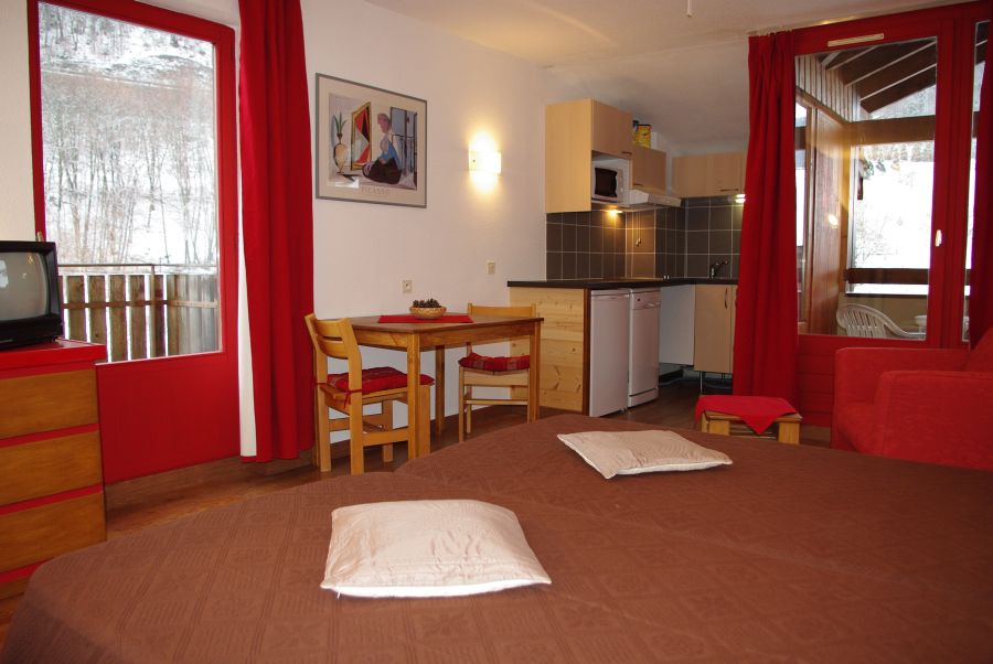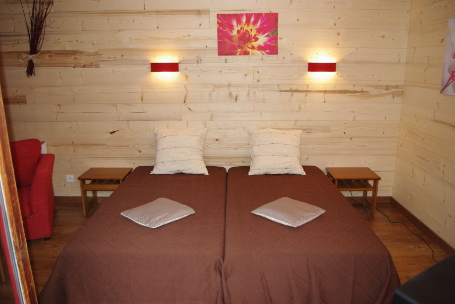 - Pièce à vivre : coin repas, 2 lits simples (2 pers), télévision avec lecteur dvd, rangements.
